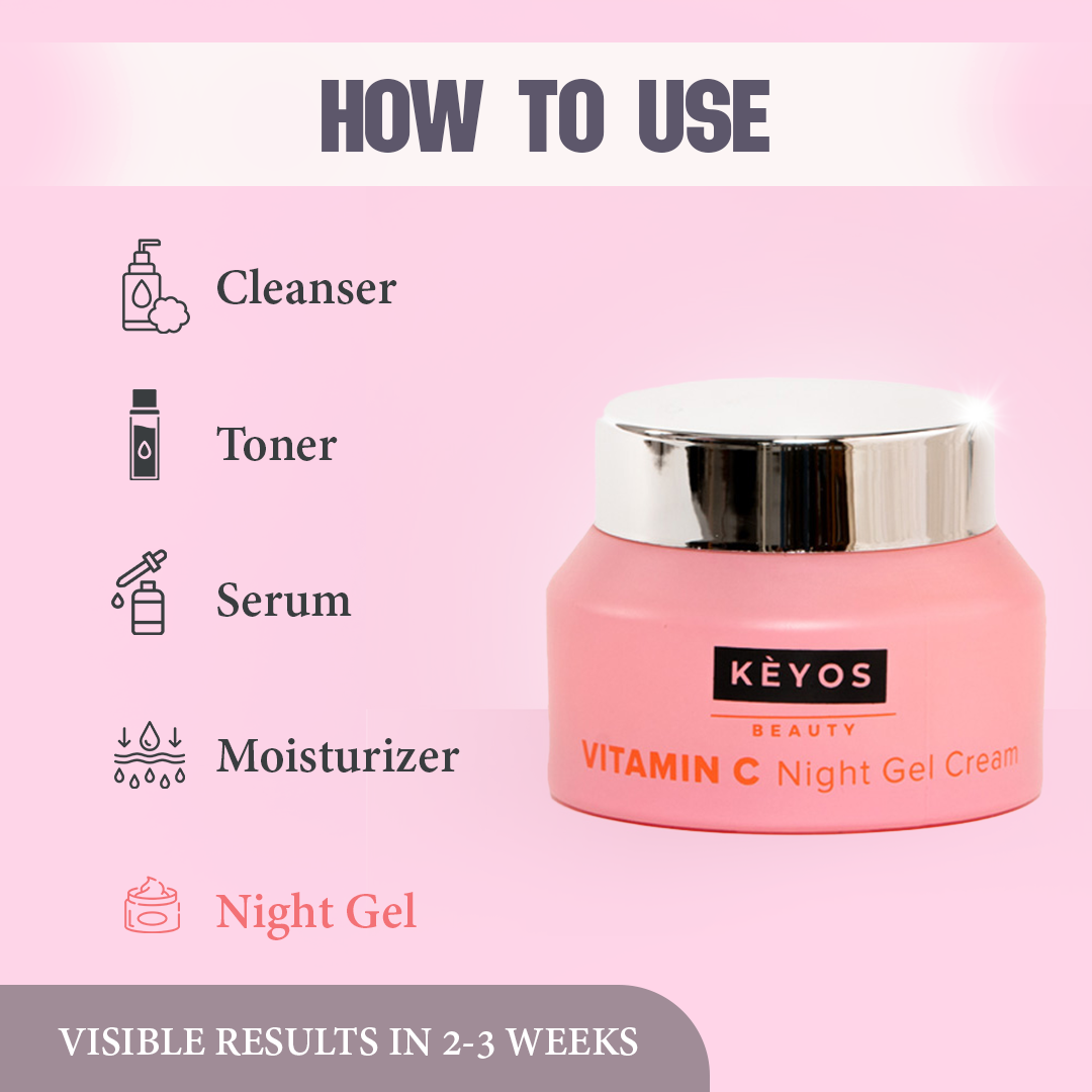 Vitamin C Night Gel Cream is a luxurious and effective skincare solution designed to rejuvenate your skin overnight. Formulated with a blend of potent ingredients, this night gel cream delivers hydration, brightening effects, and anti-aging support, ensuring you wake up with refreshed and radiant skin.